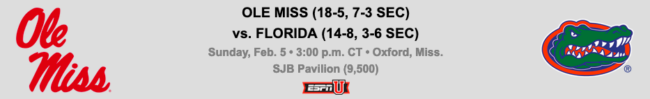 Ole Miss has claimed the last two meetings against UF, winning both matchups in 2021-22 in Gainesville and at the SEC Tournament. The Rebels last defeated Florida in Oxford back in 2019 with a 76-66 victory.