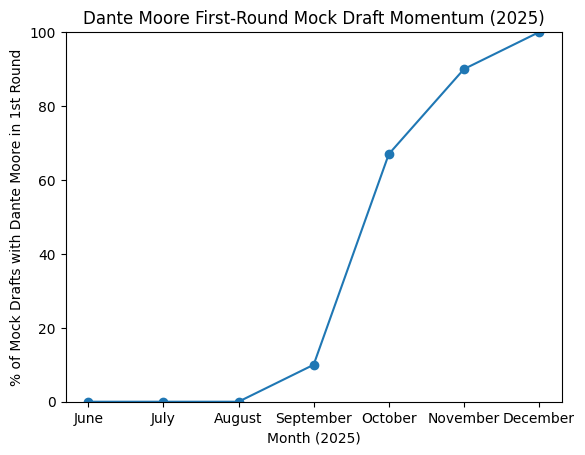 While Moore is currently considered a consensus first round pick and by most a top 5 prospect, that wasn’t always the case. In fact, the NFL draft analysts were right in step with the college football media on his projections for 2025.
