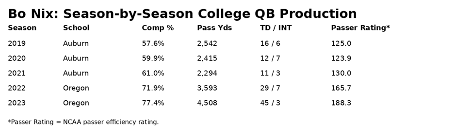 It would be one thing if this was just Moore, but Bo Nix had significant improvement as well. Nix showed drastic growth in accuracy and production after coming to Oregon from Auburn.