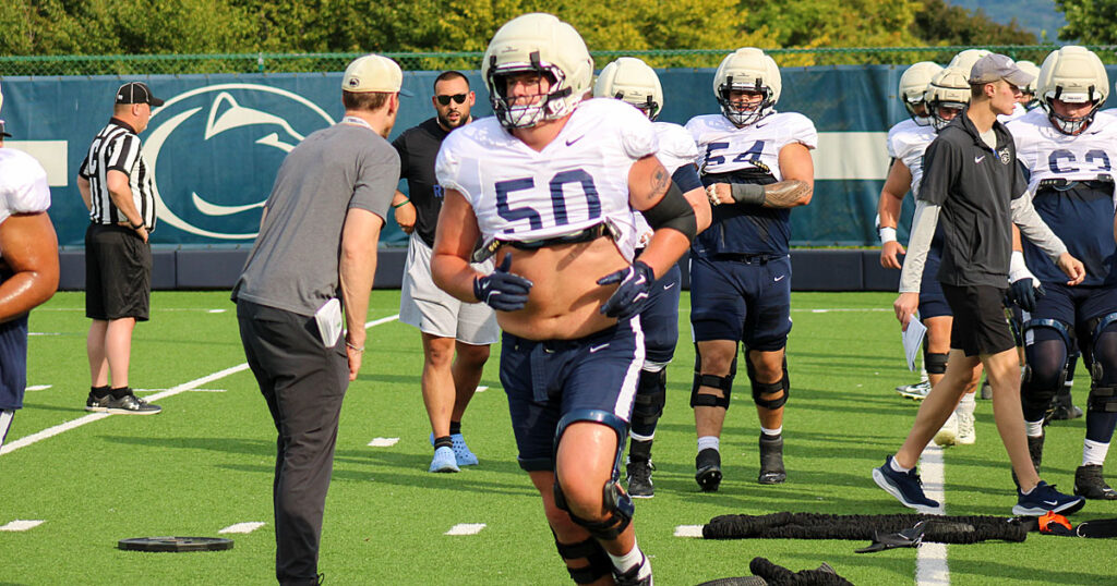 STATE COLLEGE — Penn State football practiced for the third time during preseason camps on Saturday night under sunny skies. The Nittany Lions did mostly position-specific and fundamental work during a 30-minute viewing window for reporters.