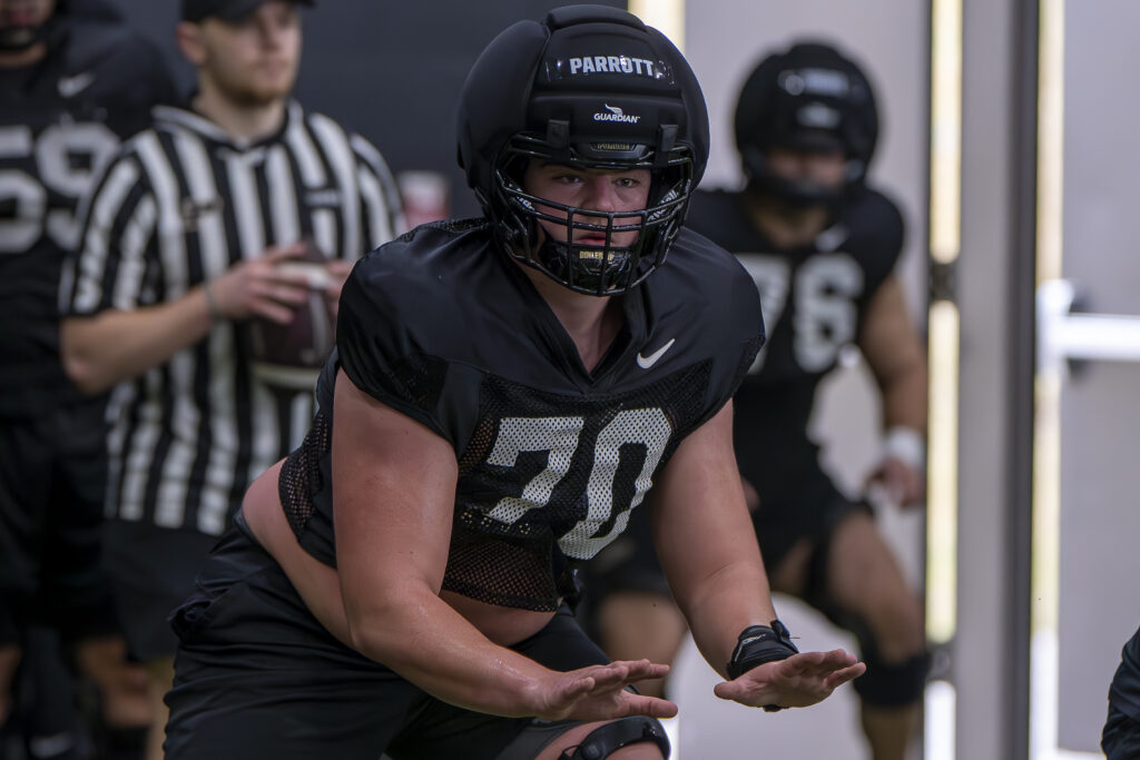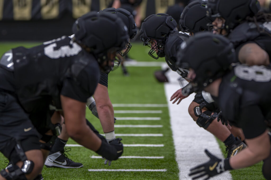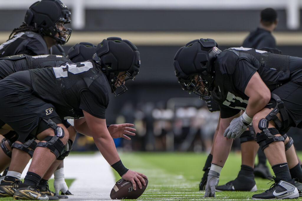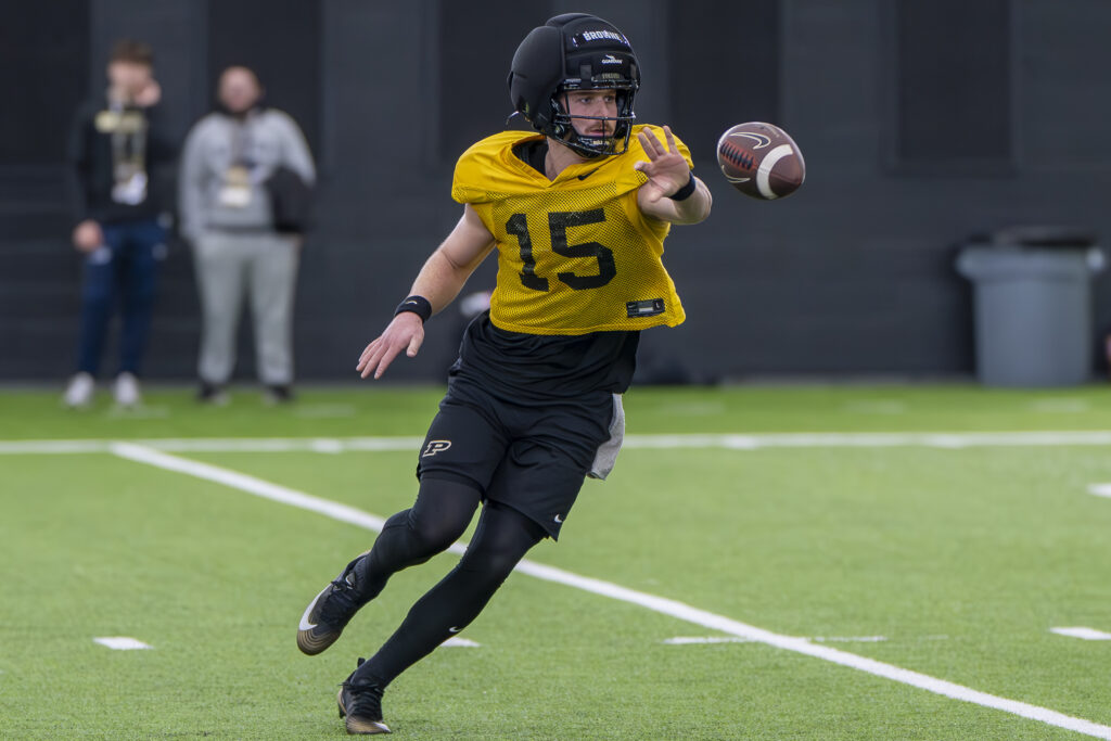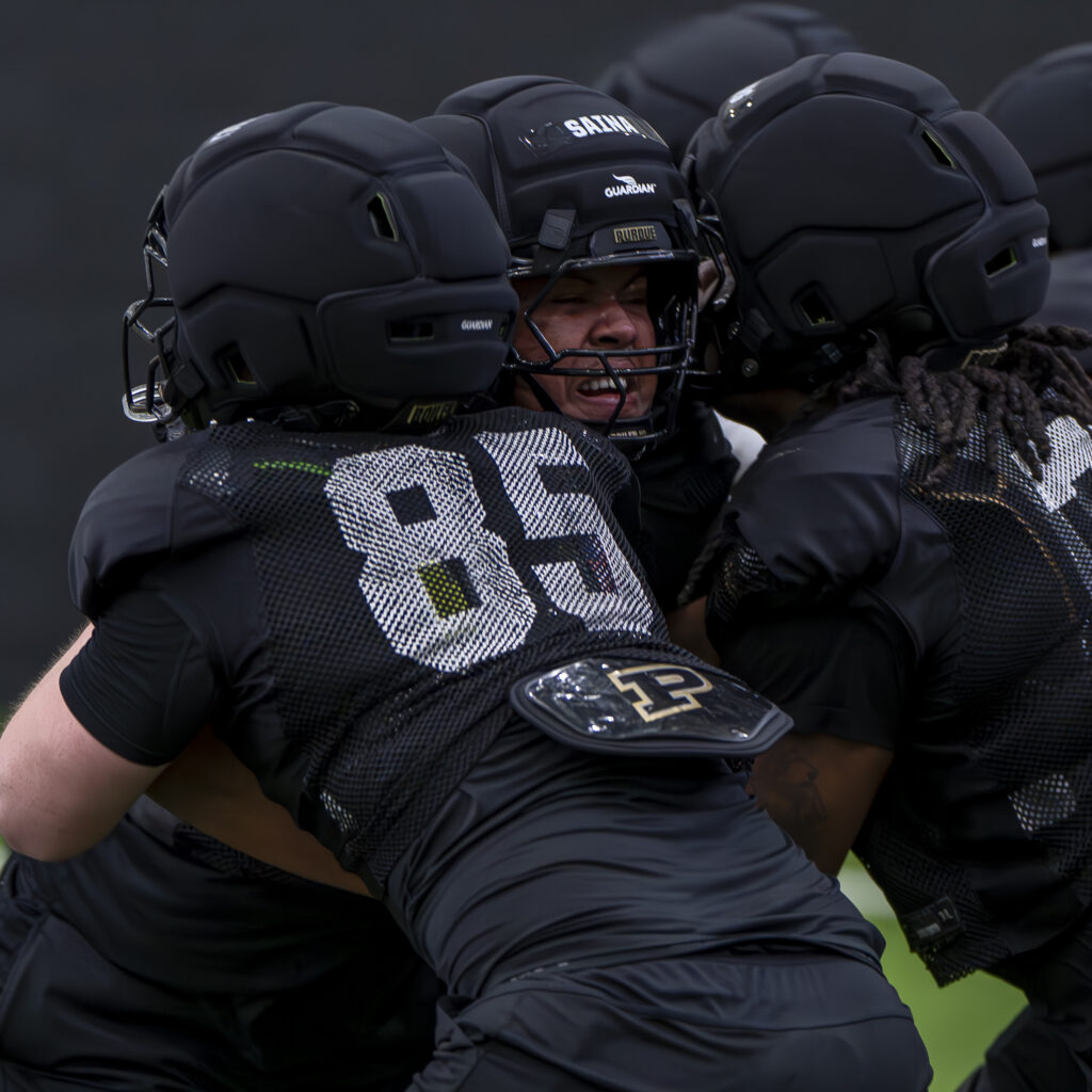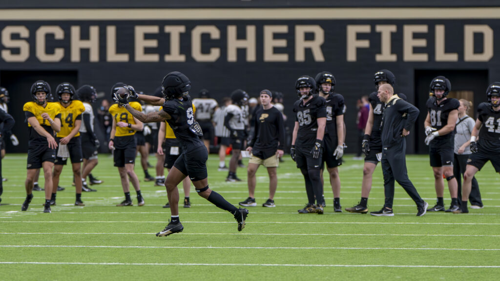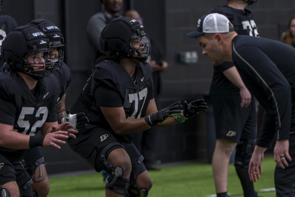 Photos from Purdue’s third spring practice, which took place Saturday morning in the Mollenkopf indoor facility. Images by Chad Krockover.