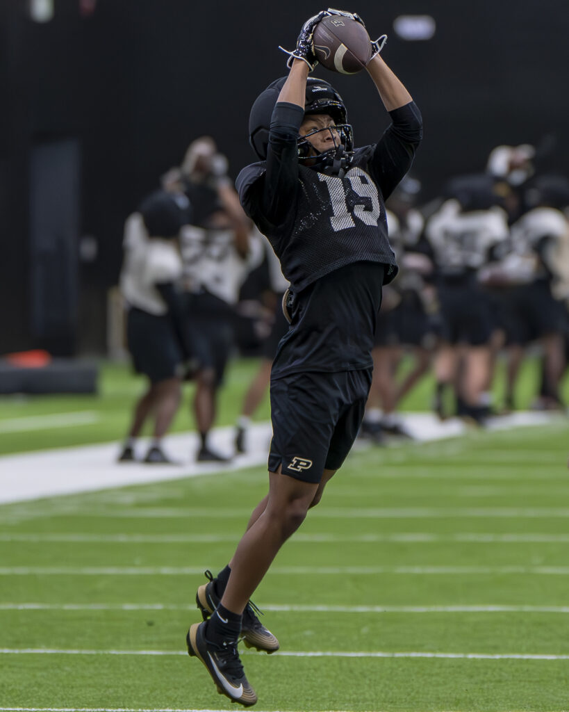Photos from Purdue's second spring practice of 2026. Images by Chad Krockover. DB Vi'Naz Cobb DB Justin Denson Ta'Vari Hampton LB Anthony Speca...
