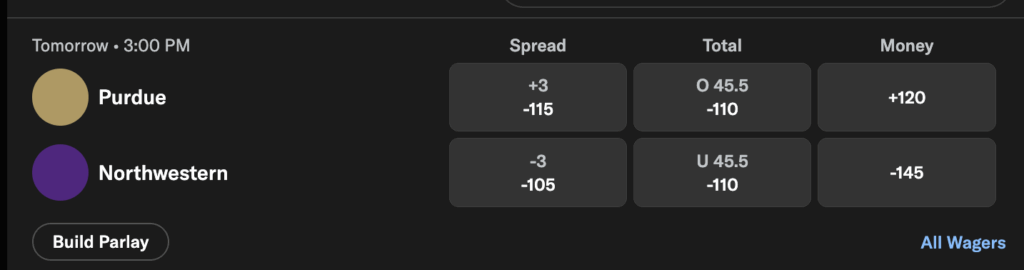 Purdue missed a golden opportunity to pick up a victory last week. Now, it has another one. Northwestern is 4-2, but there’s a reason this is only a three-point spread. If you believe in the concept of “must-win games,” this is it.
