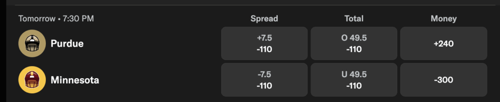Purdue’s getting there, but still hasn’t been close to turning progress into wins. This is an opportunity after Minnesota was pounded into a fine paste by Ohio State last week.