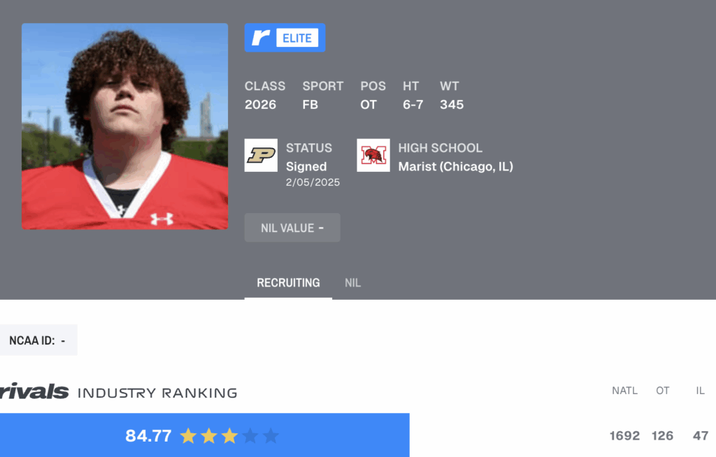 The first 2026 pledge of the Odom era is a behemoth and an offensive lineman that comes with the length and size needed to play in the Big Ten. The strength and conditioning staff will continue to work on getting Schrieber’s body in a position to compete in West Lafayette, but the big man from Chicago should be first off the bus.