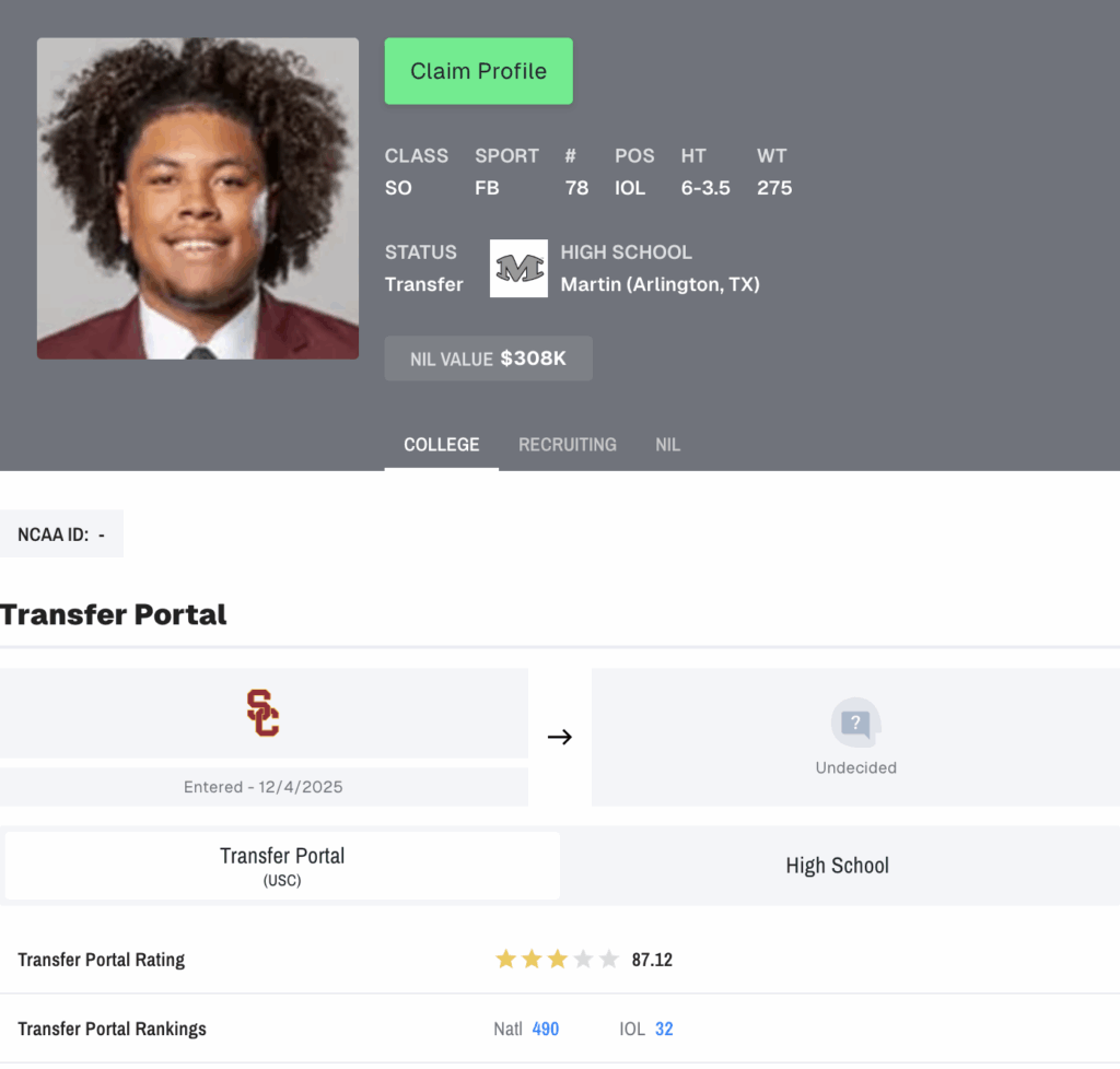 In an effort to do that, the Boilermakers have now locked up two Southern Cal offensive linemen out of the portal, with Saina joining fellow ex-Trojan Micah Banuelos. That tandem makes up two of the five portal commitments so far for Purdue, along with Texas running back Jerrick Gibson, Michigan safety Jaden Mangham, and North Carolina Central defensive tackle Wisdom Simms.