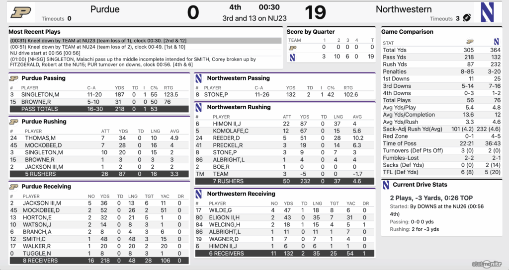 Northwestern also flipped the script on Purdue, who had been stout against the run across the last two games. The Wildcats rushed for 235 yards on the day, which was the most given up by Purdue since the Notre Dame game.