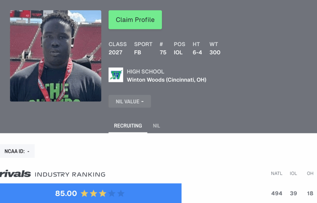 Lual Aleu: 2027 three-star Winton Woods (Oh.) offensive lineman