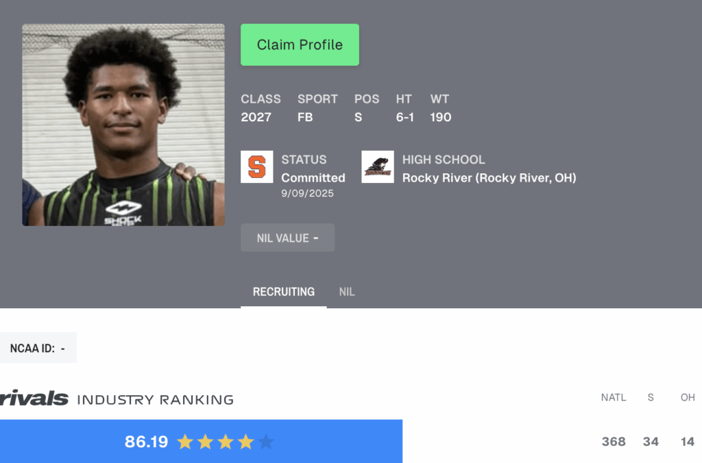 Tristin Hughes: 2027 four-star Rocky River (Oh.) safety – Syracuse commit