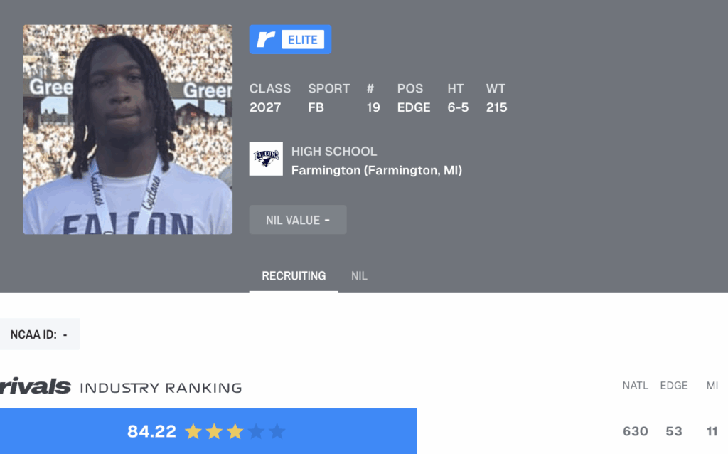 Myles Smith: 2027 three-star Farmington (Mich.) EDGE