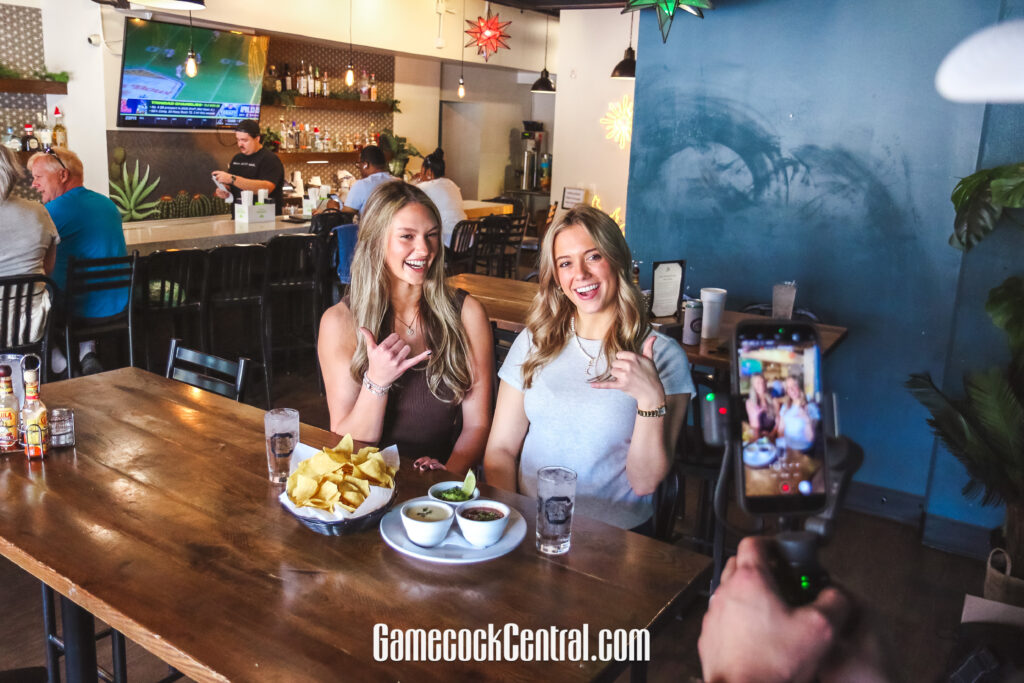 The collaboration brought together multiple corners of the Gamecock community, highlighting how NIL partnerships can authentically connect athletes, brands, and fans. The reel featured Cocky Hospitality’s FaithAnne Floyd alongside Friedel, with the two promoting the giveaway and showcasing Cantina 76 as a local Columbia staple. Ryan Ferguson of Cocky Hospitality handled filming and editing, ensuring the content felt organic, fun, and on-brand for all parties involved. And I was there to bring you a behind the scenes look at what happens during these NIL opportunities. This was filmed over a two hour period at Cantina 76 with the kind help from their staff.