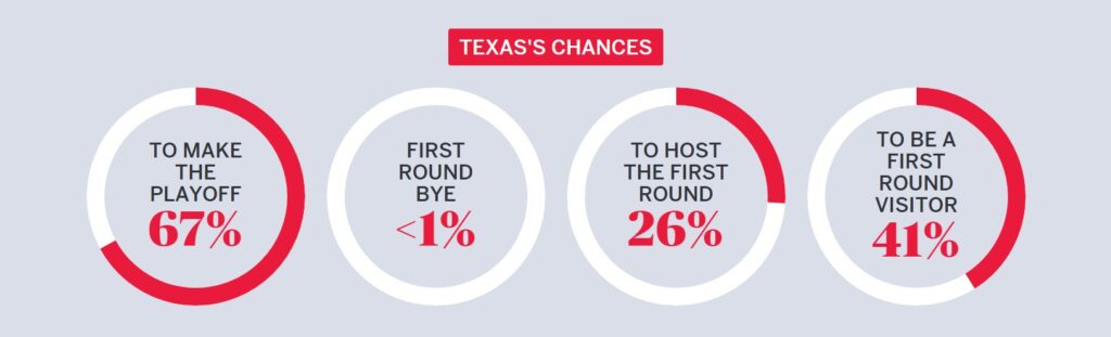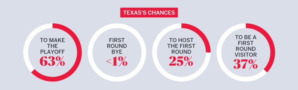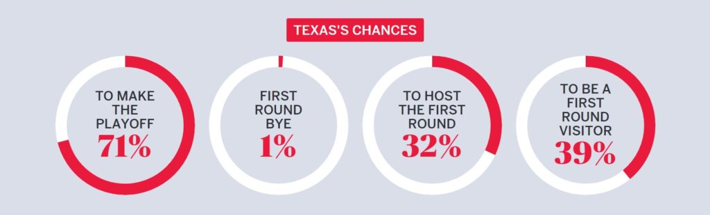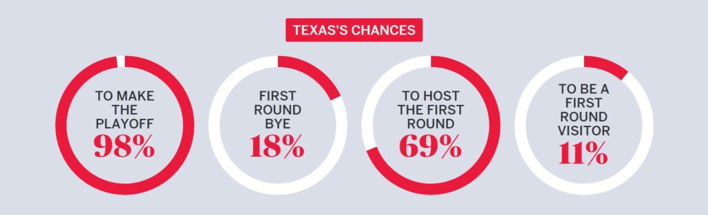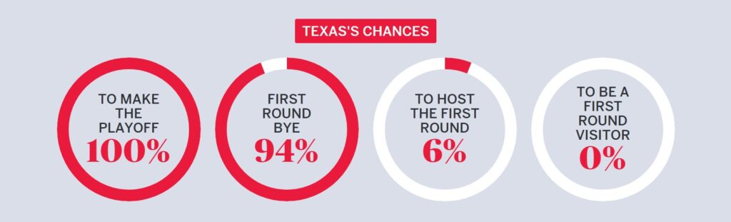 According to the Allstate Playoff Predictor, the Longhorns would have a 94% chance of a first-round bye.