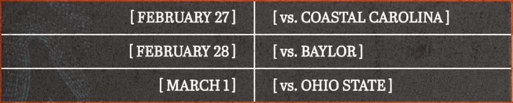 Then we have the Astros Classic in Houston, where Texas will face off against Coastal Carolina, a team coming off a deep tournament run in 2025. Texas will also face Baylor and Ohio State, games they should win. However, if they are sleeping on these teams… they can be upset.