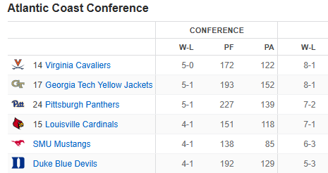 - Virginia: Wake Forest, at Duke, bye, Virginia Tech