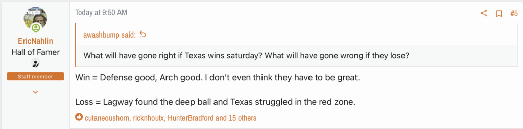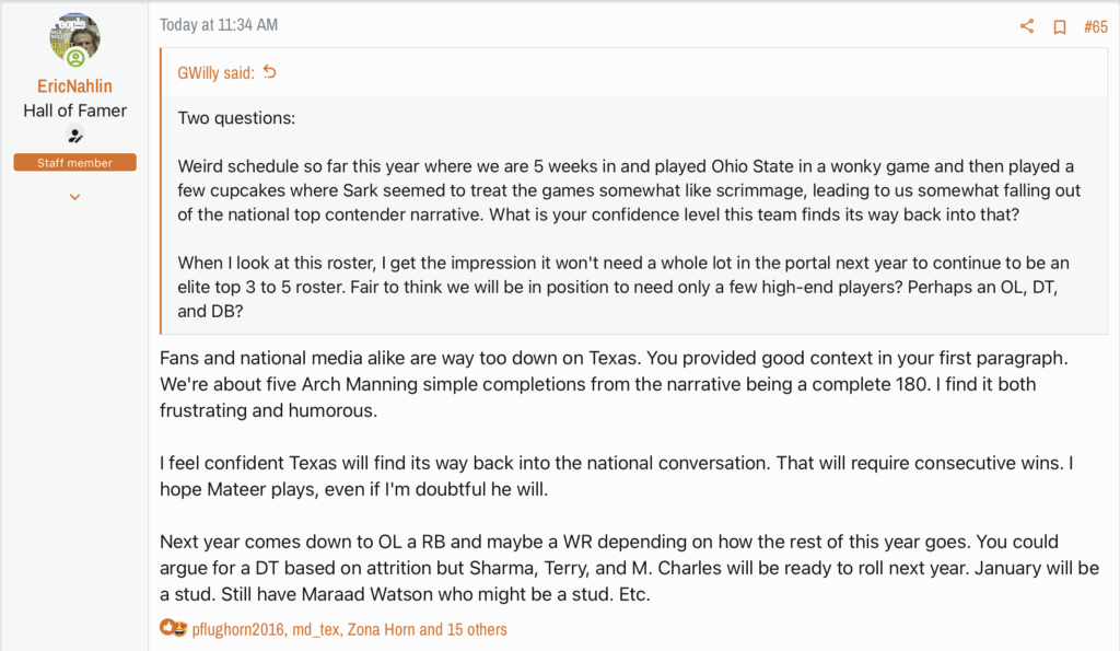 - High level discourse with the most passionate and informed Longhorns fans across multiple board forums.