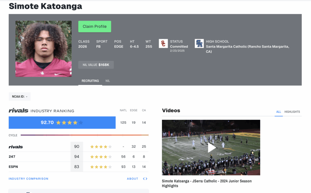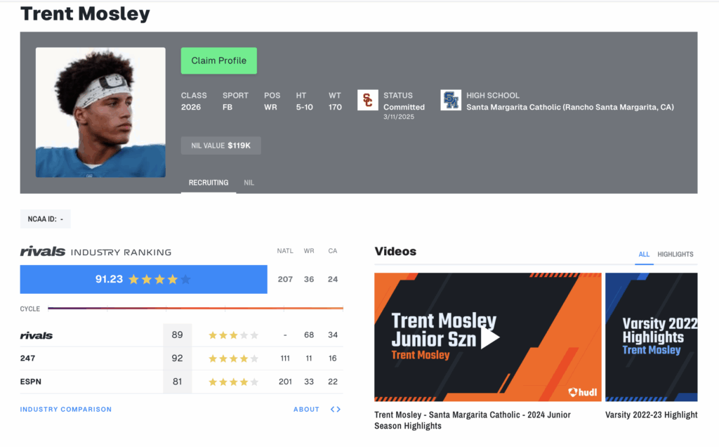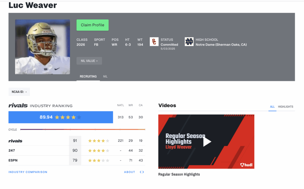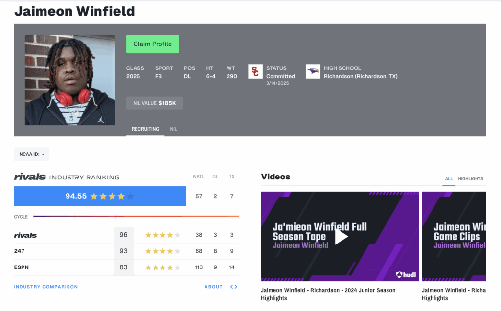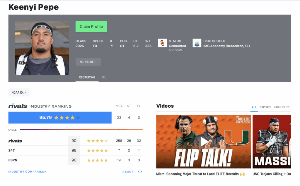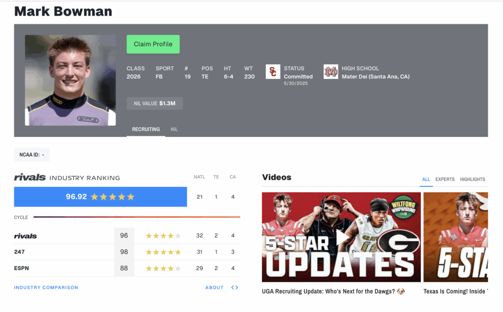 USC currently has the No. 1-ranked recruiting class per Rivals, 247 Sports, and ESPN.
