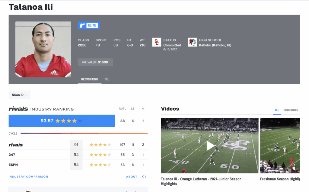 No. 88 Linebacker Talanoa Ili – Kahuku (HI)