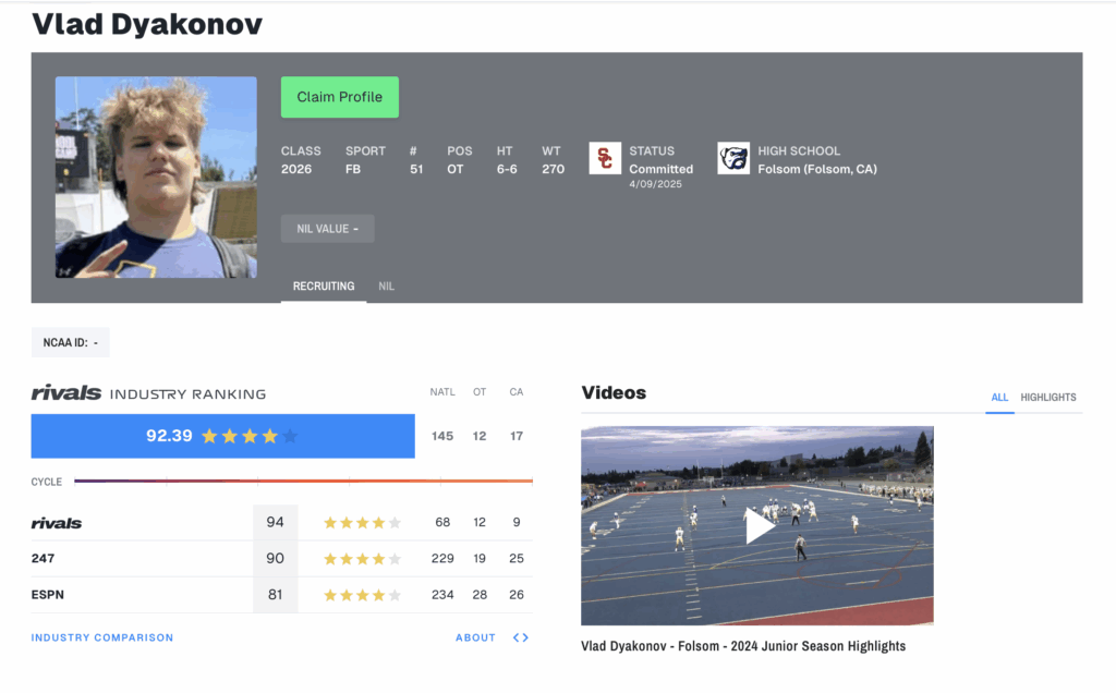 No. 145 Offensive Lineman Vlad Dyakonov – Folsom (CA)