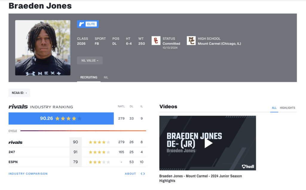 No. 279 Defensive Lineman Braeden Jones – Mount Carmel (IL)